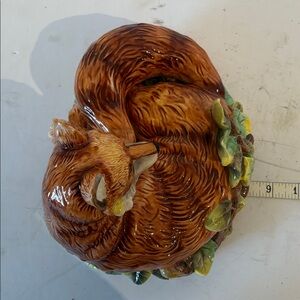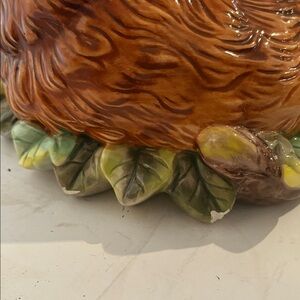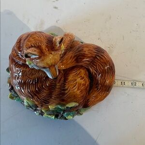 Beautiful ceramic fox figurine with detailed leaves. Perfect for home decor. A couple leaves on one side have broken tips (see pic 8).