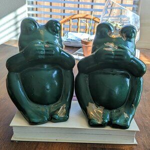 Picturing the Ceramic Frog Distressed Statues (x2).