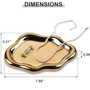 [Aesthetic Jewelry Tray] – This cute ceramic jewelry tray features classy gold tone finish. Make a great trinket dish to keep rings, earrings, and small accessories all in one place. It also suitable to be a catch all bowl for keys. This ceramic decorative jewelry dish is the perfect accent to elevate a dresser or countertop while displaying your favorite jewelry.