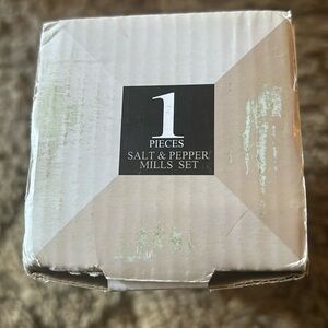 Ceramic salt & pepper mills/grinder. Brand unknown. New in box. Opened item to show no damage. Smoke free home.
