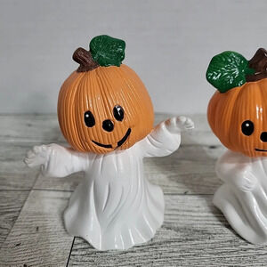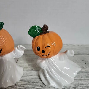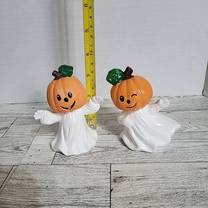 Ceramic Halloween Ghosts Decor Cute Kitschy Ghosts Pumpkins Set Of 2