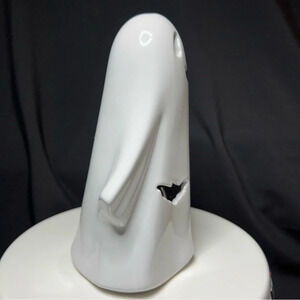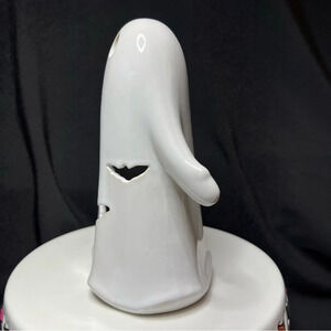 Ceramic Halloween Light Up White Ghosts w/ Bat Cut Outs
