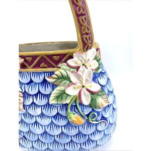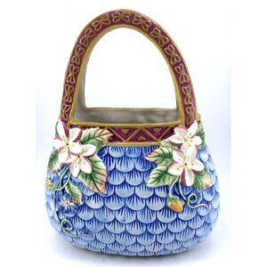 Ceramic Handbag Purse Planter Plumeria Fish Scale Tropical Hawaiian 10" Porcelai
