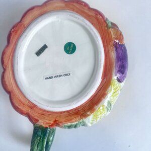 Ceramic Harvest-Themed Gravy Boat With Handle & Matching Spoon Hand-Painted in original box & styrofoam for protection.