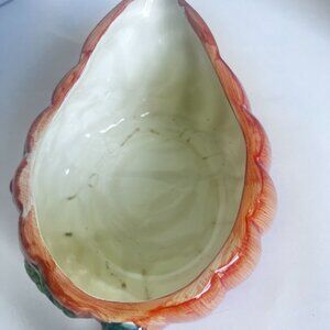No visible chips or cracks. Crazing and discoloration inside bowl. Top to bottom = 3.5 inches. Length 8" Width 5". Beautiful Decor piece.