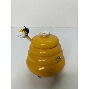 Ceramic Honey Miel Jar Honey Pot Bee Dipper And Bee Hive With Daisy
