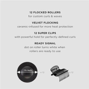 Roller Set: Includes 12 jumbo 1½-inch ceramic flocked rollers, perfect for large, voluminous curls and waves.