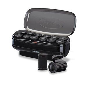 Achieve voluminous curls and waves effortlessly with the Conair Big Curls & Waves Jumbo Roller Set. Featuring 12 jumbo ceramic flocked rollers, this set heats up quickly in 85 seconds to deliver even heat and long-lasting curls. The set includes 12 super clips for secure holding and flexible metal pins for added comfort. Perfect for creating smooth, flowing curls with minimal heat damage, this roller set is ideal for salon-quality results at home.