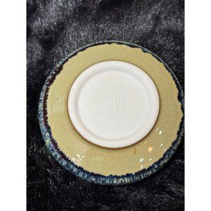 Ceramic Ikebana Vase With Blue Speckled Glaze & Built-In Needle Frog Signed