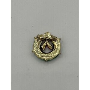 Ceramic Jewelry Brooch Pin Beatrix Christmas Wreath Gold Tone Red Bow Green