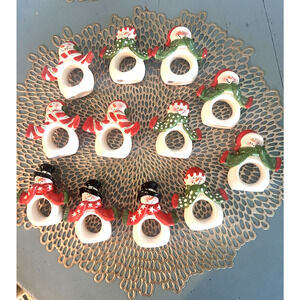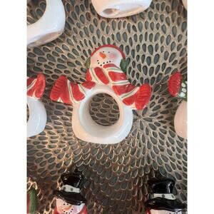 Ceramic LOT Set of 12 Christmas Whimsical Snowman Napkin Rings Holders
