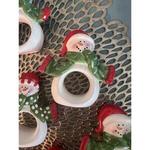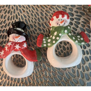 Description: Ceramic Christmas Whimsical Snowman Napkin Rings Holders