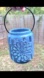 Ceramic Lantern Blue Decorative Piece Cut Out with Handle. Farmhouse Decor NWOT