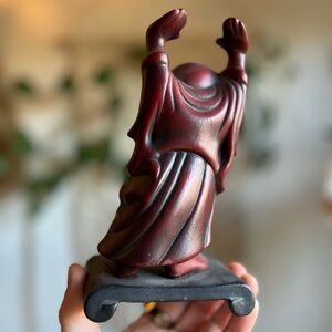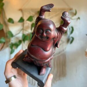Beautiful ceramic Laughing Buddha sculpture – a joyful, uplifting piece perfect for adding peace and positive energy to your space. This limited edition ceramic figure is artist-signed and numbered 9/15, making it a rare collector’s item. Featuring a vibrant red glaze with deep black accents, the statue captures the Laughing Buddha in a stretching, happy pose that symbolizes prosperity, good fortune, and happiness.