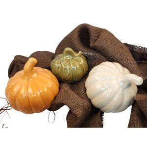 Ceramic Mini Pumpkin Decor Set W/Burlap Fall Holiday Table Centerpiece Craft Kit