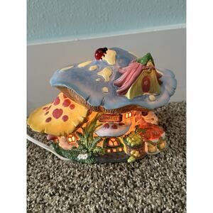 Ceramic Mushroom Fairy Cottage House Grocery Store Toadstool Night Light Spring