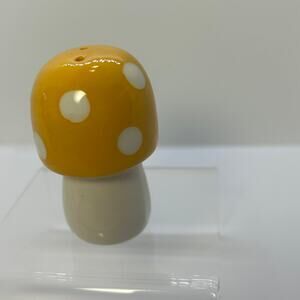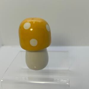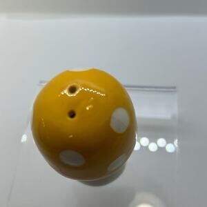 Ceramic Mushroom Yellow 2 1/2 in w White Polka Dots and Small Holes on the Top