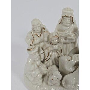 Ceramic Nativity Set Religious Christmas Off White With Gold Painted Trim