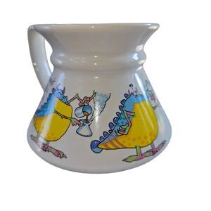 This 90's coffee mug features the cartoon dragon monsters from Papel Moodz. It is in great condition. This is a no spill model of mug that was popular a few years back and boasted it as on spill because of the wide bottom.