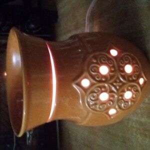 Enhance your home with this elegant ceramic wax warmer. Its vibrant orange color adds a warm touch to any room. Perfect for creating a cozy atmosphere.