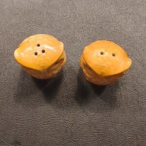 This pair of handsome glossy owls are in a glazed combo color of orange and peach - with a cream base.