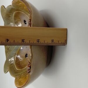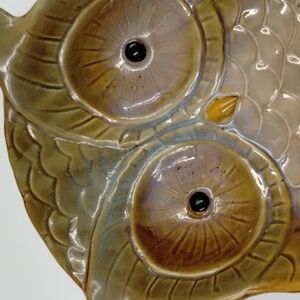 Ceramic Owl Shape Bowl 7.5 x 9.5 x 2.5 tan and blue serving bowl
