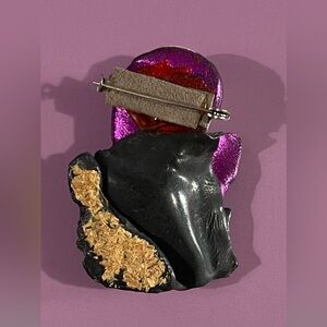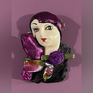 Add a touch of elegance with this stunning ceramic painted face colorful brooch. Perfect for any occasion.