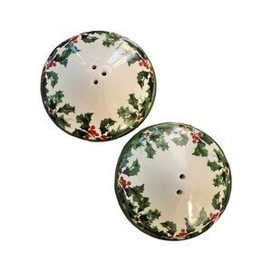 Ceramic Peppermint Stripe and Holly "Joy" Salt and Pepper Shakers