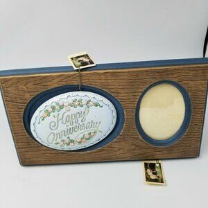 Ceramic Photo Frame Easel Green Brown Happy Anniversary Gift NEW