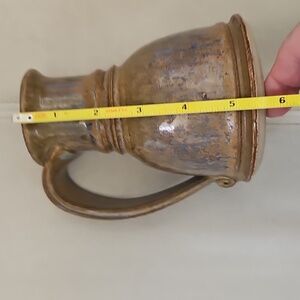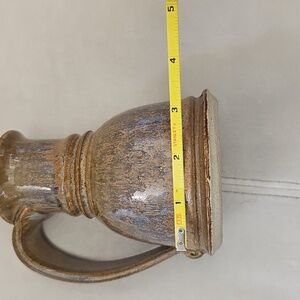 Beautifully made vase/pitcher in brown color with hints of blue overtones. A nice piece of artistry to home decor.