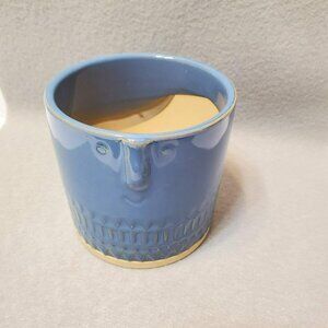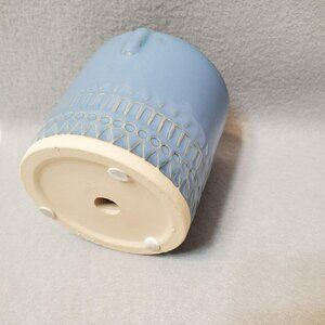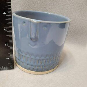 Ceramic Plant Pot, Blue Glaze, Face Shape, Whimsical Eclectic Coastal Boho Decor