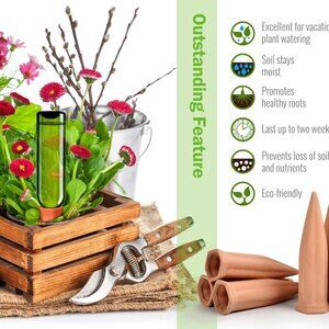 Terracotta Watering Stakes Cultivate Your Garden On The Go Each watering stake 7inch tall and holds about 100ml of water, but it's design to recycle an empty bottle which can hold up to 1.5Liter water, usually, it steadily releases 7-10days for 1Liter water, so you can come home to a healthy, flourishing garden. Plant a smile when you gift these plant watering globes! With their new watering system, green thumbs aren t the only ones that can grow thriving garden