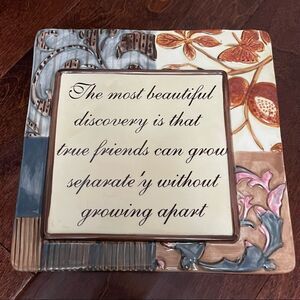 EUC ceramic plaque stating: “the most beautiful discovery is that true friends can grow separately without growing apart”