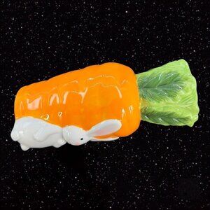 Ceramic Porcelain Bunny And Carrot Tall Vase 3D Figural Whimsical Vase 9"Tall