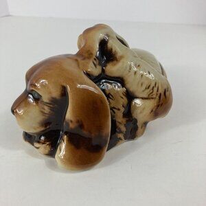 Ceramic Porcelain Momma Dog Pup Cocker Spaniel Brown 4 x 5.5