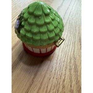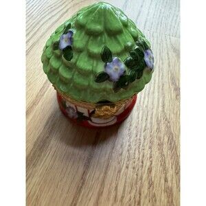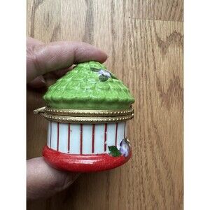 Ceramic Porcelain Trinket Box Flower Yellow Bird Cage Round Dome Lidded Jewelry