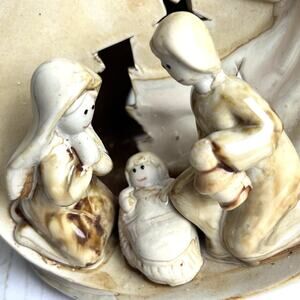 Ceramic Pottery Nativity Figurine Holy Family Angel Jesus Luminary Votive Holder