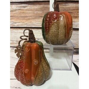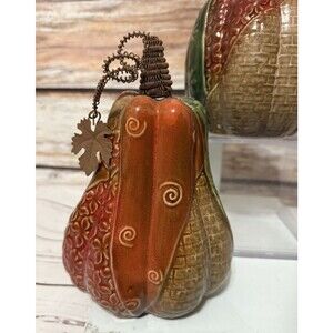 Ceramic Pumpkin & Gourd Metal Stem and Leaf Fall Decor 9 Tall Green Orange Tan. No chips or breaks. Nice quality. See photos for details. I ship on the same or next day from a smoke-free home. I make every effort to describe items honestly and price them fairly. Feel free to make an offer or ask any questions. Im happy to help. (SW)