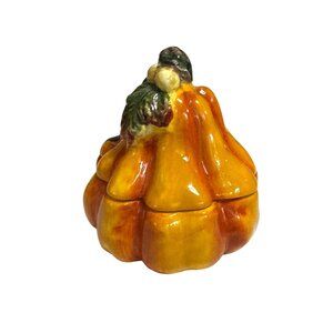 This charming ceramic trinket box is designed in a delightful pumpkin shape, making it a whimsical addition to your autumn decor. The vibrant colors and intricate details bring a festive touch to any space. Ideal for storing small items like jewelry or keepsakes.