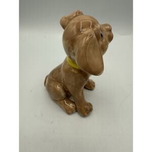 This vintage ceramic figurine features a charming brown puppy dog. The glazed finish adds to its adorable appearance and makes it a great addition to any dog lover's collection. The figurine is non-breed specific, making it a perfect gift for anyone who loves dogs of all kinds.