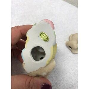 Ceramic Rabbit Egg Basket Two Girls Hold Candle Holder Easter Decor Three Piece
