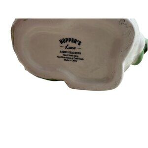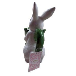 Adorable ceramic Hopper’s Lane Easter Collection bunny pitcher featuring a sweet white rabbit holding a green cabbage leaf bowl with matching cabbage handle.