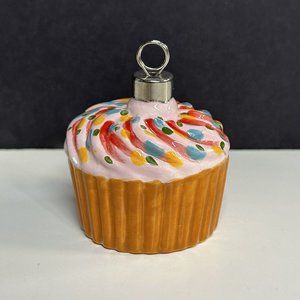 Ceramic Rainbow Cupcake VTG Christmas Ornament Confetti Signed & Numbered 3"