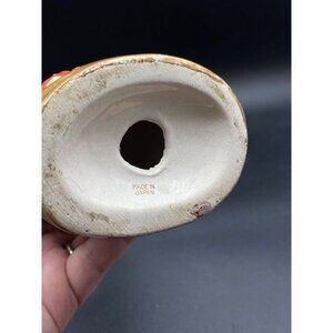 Ceramic Rooster Chicken Figurine Made In Japan Farmhouse 9.5”. It is the good morning rooster wake up Good condition, but there is crazing and paint loss see photos. Made in Japan probably in the 1950s.