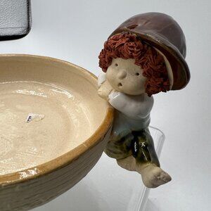 Ceramic Round Ceramic Bowl Storage Home Decor Piece Little Boy Sitting