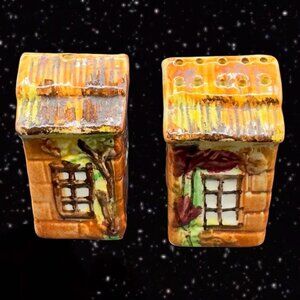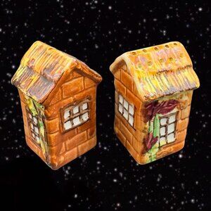 Ceramic Salt and Pepper Shaker Set 2 pcs Cottage House Painted Made In Japan 3”T