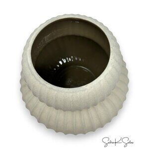 With its subtly imperfect form and creamy sandy finish, this discontinued Studio McGee vase brings quiet elegance to any shelf, mantel, or table. Style it alone or pair with coordinating canisters (last pic) other tonal ceramics for a collected look.
