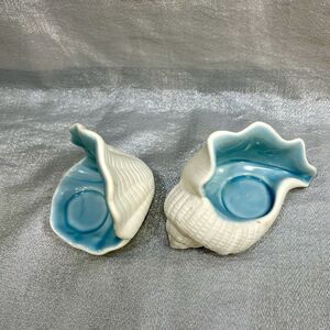 Ceramic Sea Shell Tea Light Candle Holders Set of 2