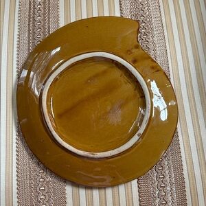 Beautiful ceramic snail shell plate with a spiral design and deep gold and gray tones. A pretty little accent to any table top. Great condition. No nicks or cracks.