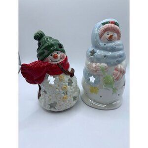 Ceramic Snowman Candle Holders Set Of 2 For Holiday Decor
